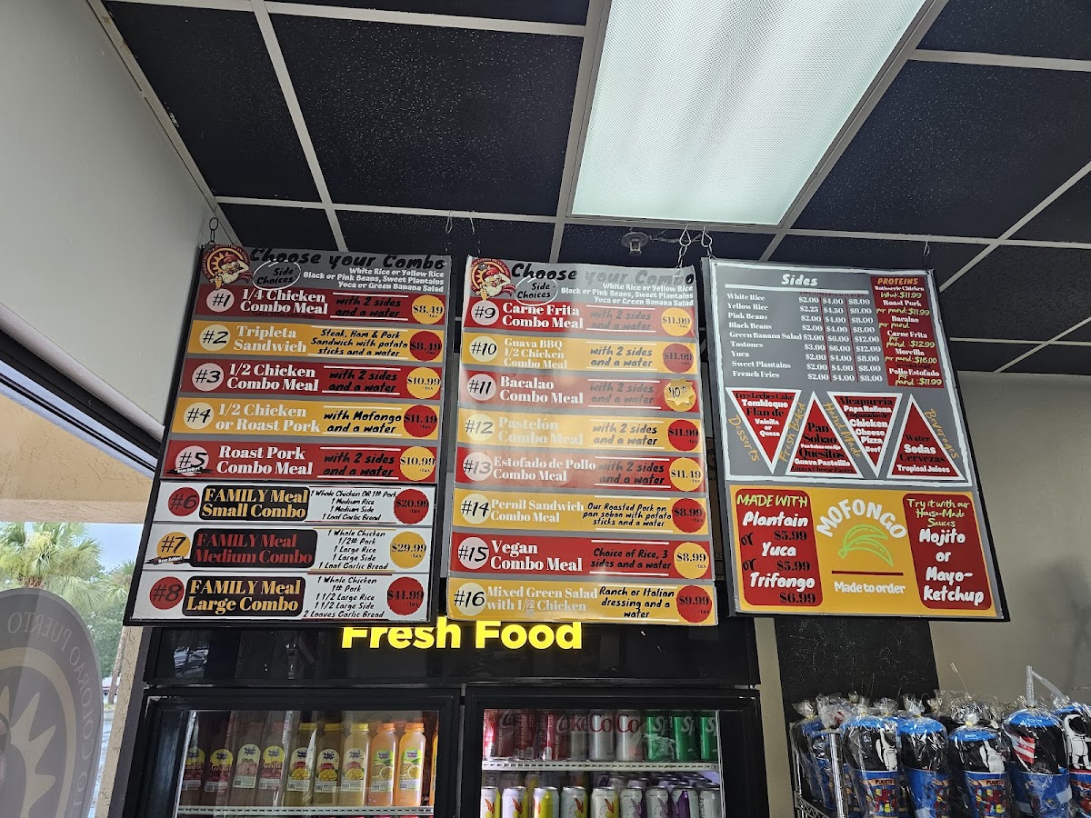 Mofongo made-to-order with your choice of Rotisserie chicken or Roast Pork. Try it with shrimp, bacalao or carne frita for an extra charge.